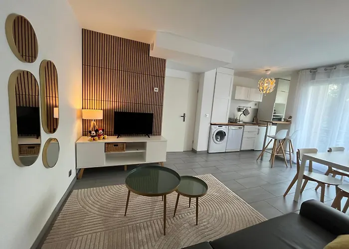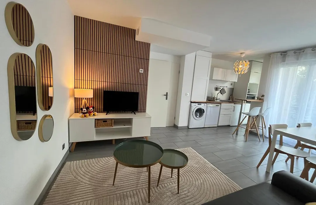 Apartmán se nachází v blízkosti Val d'Europe nákupní centrum, což je vzdáleno asi 1,1 km. Pro více jídel je k dispozici Disneyland Paříž a La Vallée Village nákupní centrum, které se nachází 20 minut chůze od ubytování.